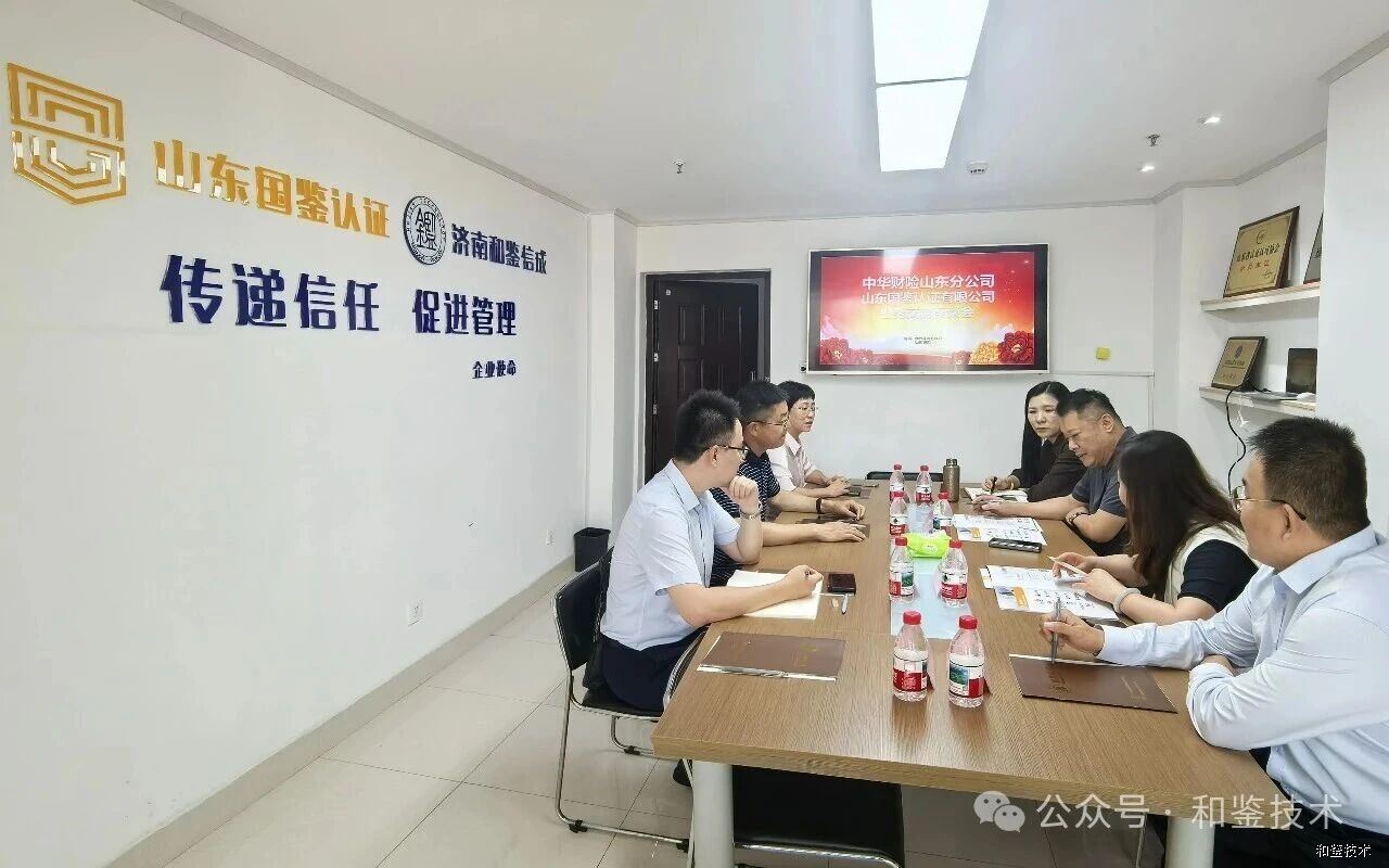 2025 年 9 月 24 日,中华财险山东分公司团体客户渠道部 / 重要客户部总经理赵锋一行,专程赴济南和鉴信成技术服务有限公司开展业务交流座谈。济南和鉴信成技术服务有限公司董事长陈怀章全程接待并参与座谈,中华财险山东分公司团体客户渠道部 / 重要客户部副总经理邵斐、济南中心支公司副总经理王玉晶及双方相关业务负责人共同参会。